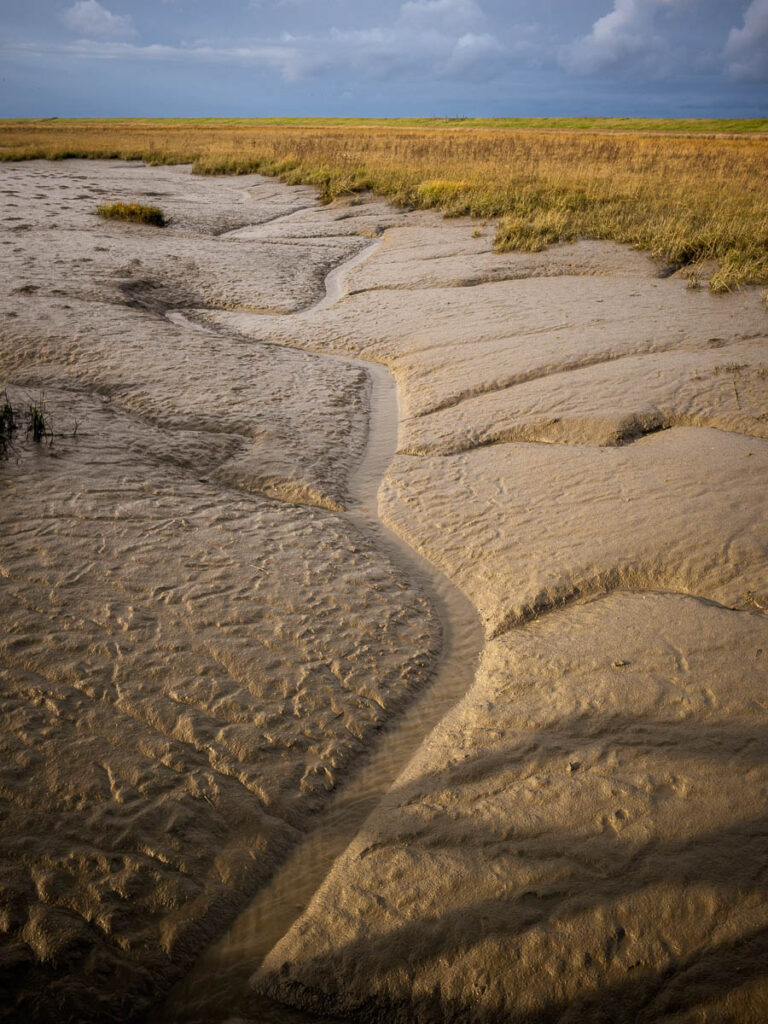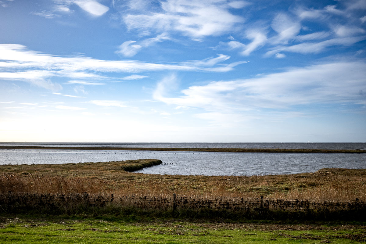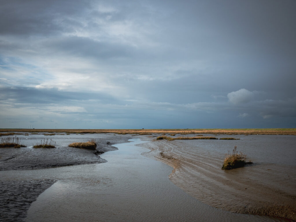 Dieses Mal aber sollte weniger die Vogelwelt als vielmehr die Landschaft im Fokus stehen. Gerade um diese Jahreszeit hoffte ich, ihren rauen Charme in meinen Fotos einfangen zu können. Dabei spielte mir das Herbstwetter durchaus in die Karten. Der zeitweise nahezu bedrohlich erscheinende Himmel über dieser spröden Landschaft sorgte ganz von alleine für Bilder, die sich von den üblichen Sommer-Sonne-Strand-Postkartenmotiven deutlich abheben. Die fast vollständige Abwesenheit von Touristen trug ihren Teil dazu bei, die schier endlose Weite des Wattenmeers zu betonen.